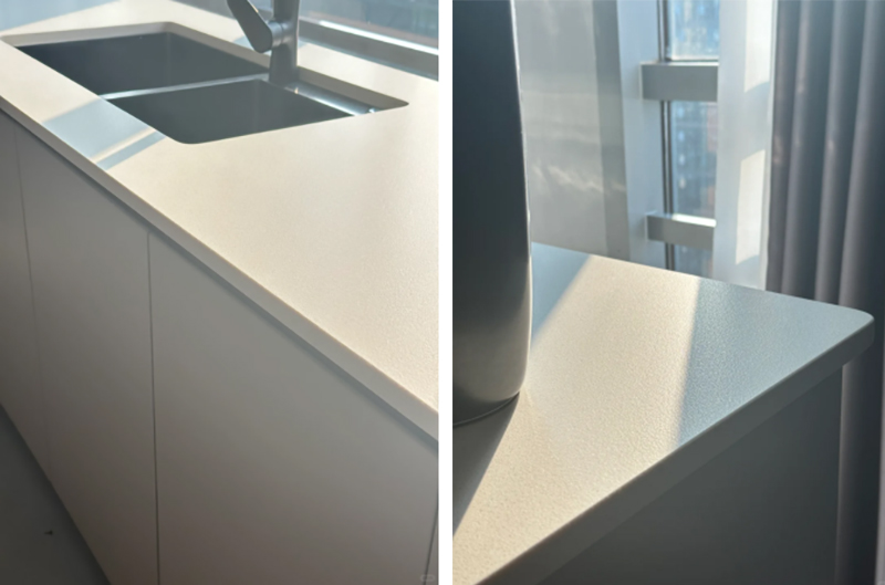 在廚房的各區(qū)域設計中,淺色系似乎是廚房臺面的最佳選擇,該案例的中島臺來選自超自然系列的暮雪,富有天然的質感和瑰麗的色澤,自然光線下的純美中島臺,在視覺上呈現震撼的細節(jié)美,它出色的耐用特性,完美契合家居清潔需求,是現代廚房的不二之選。